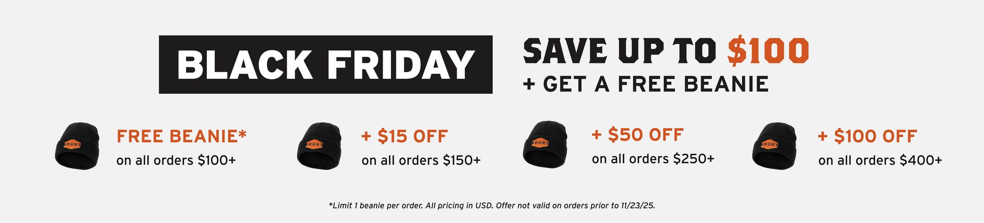 Brunt is a brand we’ve gotten more familiar with over the last year, and they’re producing some high-quality gear, whether your headed to the jobsite or you just need some stuff to protect you while taking care of the property. Right now, you can get a free beanie and up to $100 off your order (see the details below), through Sunday. bruntworkwear.com