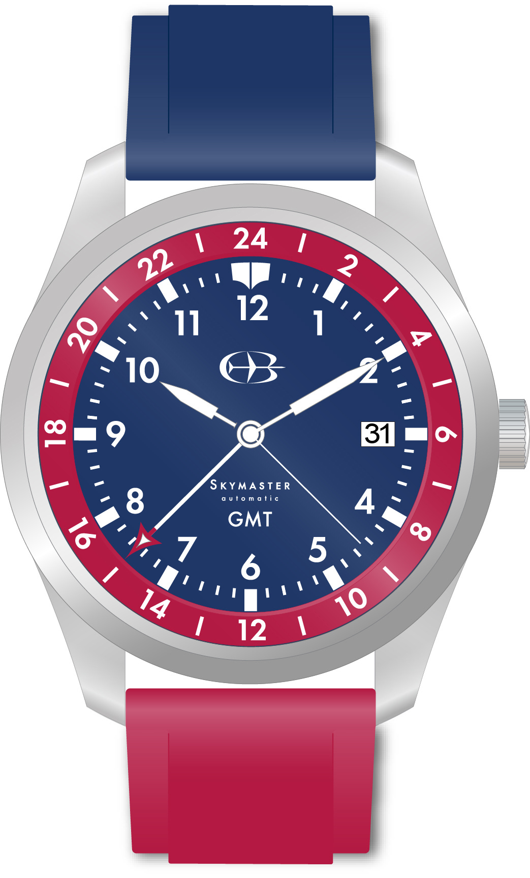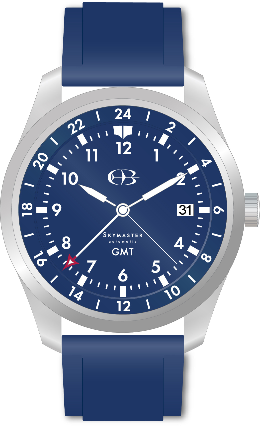 Skymaster Automatic GMT Strap: Matching blue silicone strap for Skymaster Automatic GMT.
