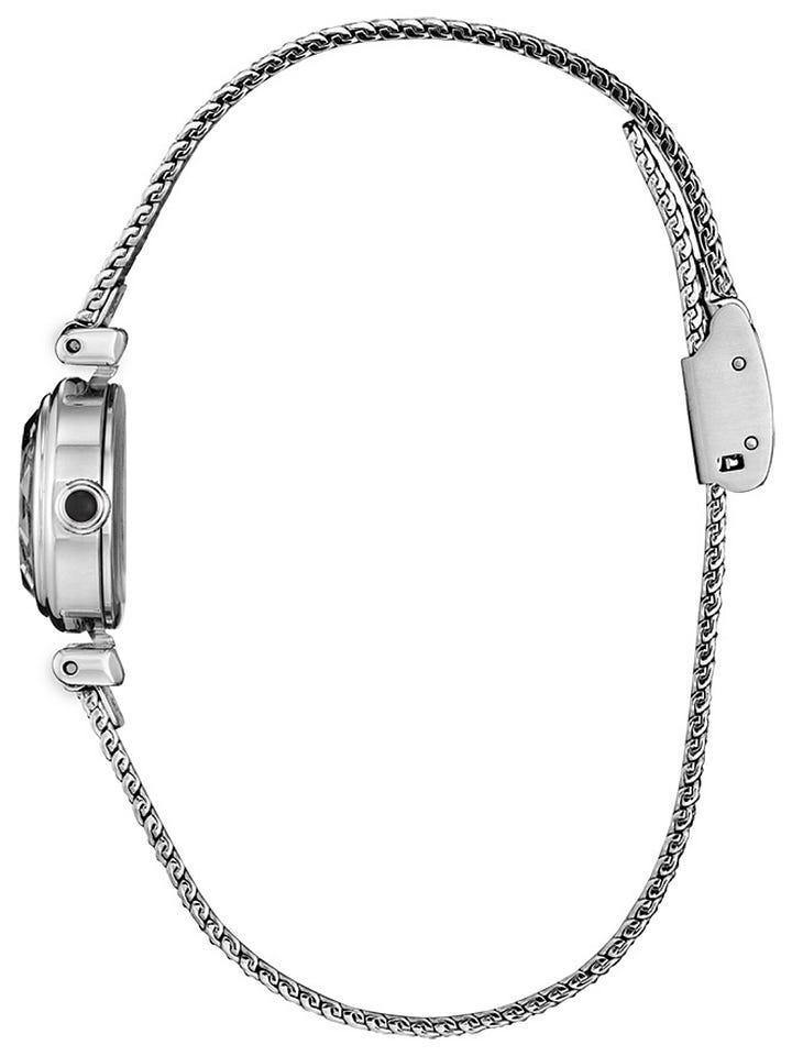 The first is an elongated rectangular case, which feels very bracelet-like. This comes in either silver or gold-tone finishes, and either on a leather strap or a stainless steel mesh. On the other hand, the round case comes only on the mesh, with a dial color dictated by the metal finish color selected.