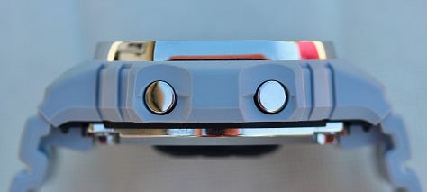 In terms of an every day sort of G-SHOCK, I think this squared-off profile is the one I like about the best. It gives you a decent amount of screen real estate, while still not feeling like it overwhelms the wrist. The case is not overly thick either (even with the shock protections), which makes it more of a watch you’d want to wear each day.