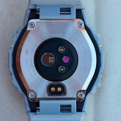 It couldn’t be simpler to describe this watch. Basically, you take the basic 5600 series watch, and then you give the internals a serious upgrade, which brings along all of the modern smartwatch functionality you might want. Sleep tracking, step tracking, and then of course the heart rate and oxygen tracking courtesy of the optical sensors on the caseback.