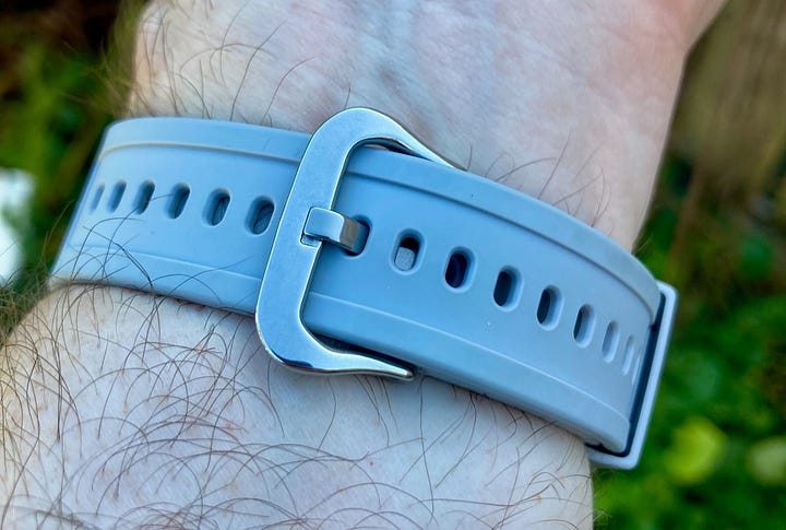 To keep all of that powered, you’ll also see the charging port on the back of the watch, which is done via a robust clamp that you put in place to top the watch off. However, that’s not the only way to keep it going. You see, it also has solar charging, which we think is an excellent feature to have built into a power-hungry smartwatch.