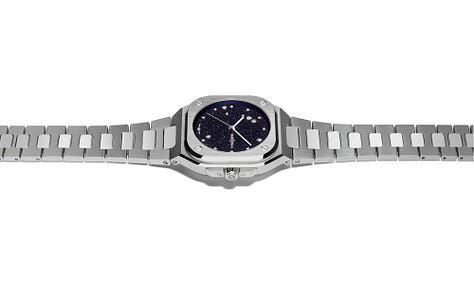 The case remains the anchor. At 36mm wide and roughly 8.5mm thick, this is not just a scaled down version of the 40mm model but a fully reworked case that preserves the proportions and the integrated flow between case and bracelet. The familiar details are all here, brushed and polished steel, the raised bezel with four screws, crown guards, and a screw down crown that maintains 100 meters of water resistance. The result is a watch that still reads as a BR-05 first, not a jewelry piece dressed up as one.