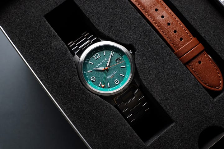 While the MSRP for the watches ranges from $699 - $785, there are discounts to be found in the pre-order. In fact, the pricing range drops down to $560 - $630, which is a tidy savings. There are three dial colors to choose from, and each watch ships with two straps (we’re happy to see a steel bracelet is an option as well). Check out the pre-order when it opens today at 12pm Eastern over at lacitewatches.com