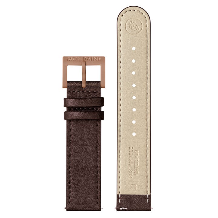 What makes this release interesting is the mix of mainstream and niche. On one side you have the standard Mondaine traits. Swiss Made, clean dial, quartz movement, modest size, easy strap swap with 20 mm lugs. On the other, you have a case built from plant oil and glass fiber, a grape based strap, and a very specific fashion tie in to Pantone’s Mocha Mousse. This is not a watch that tries to appeal to everyone. It aims at people who care about color trends, about material stories, and about keeping things light and low drama on the wrist.