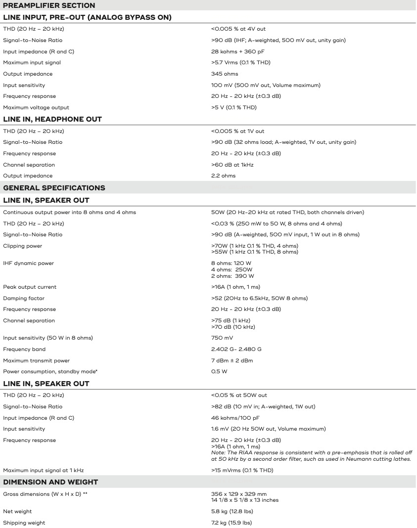 50 watts per channel of NAD’s HybridDigital™ UcD Amplification