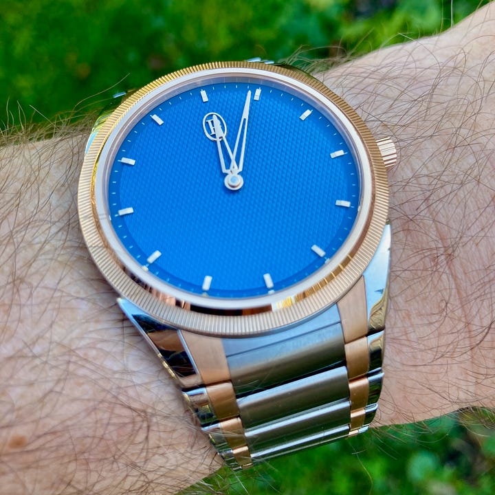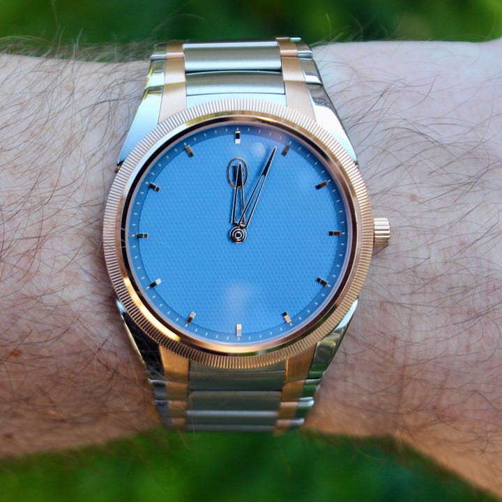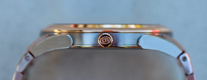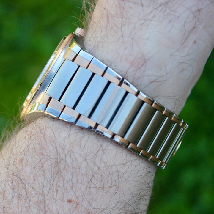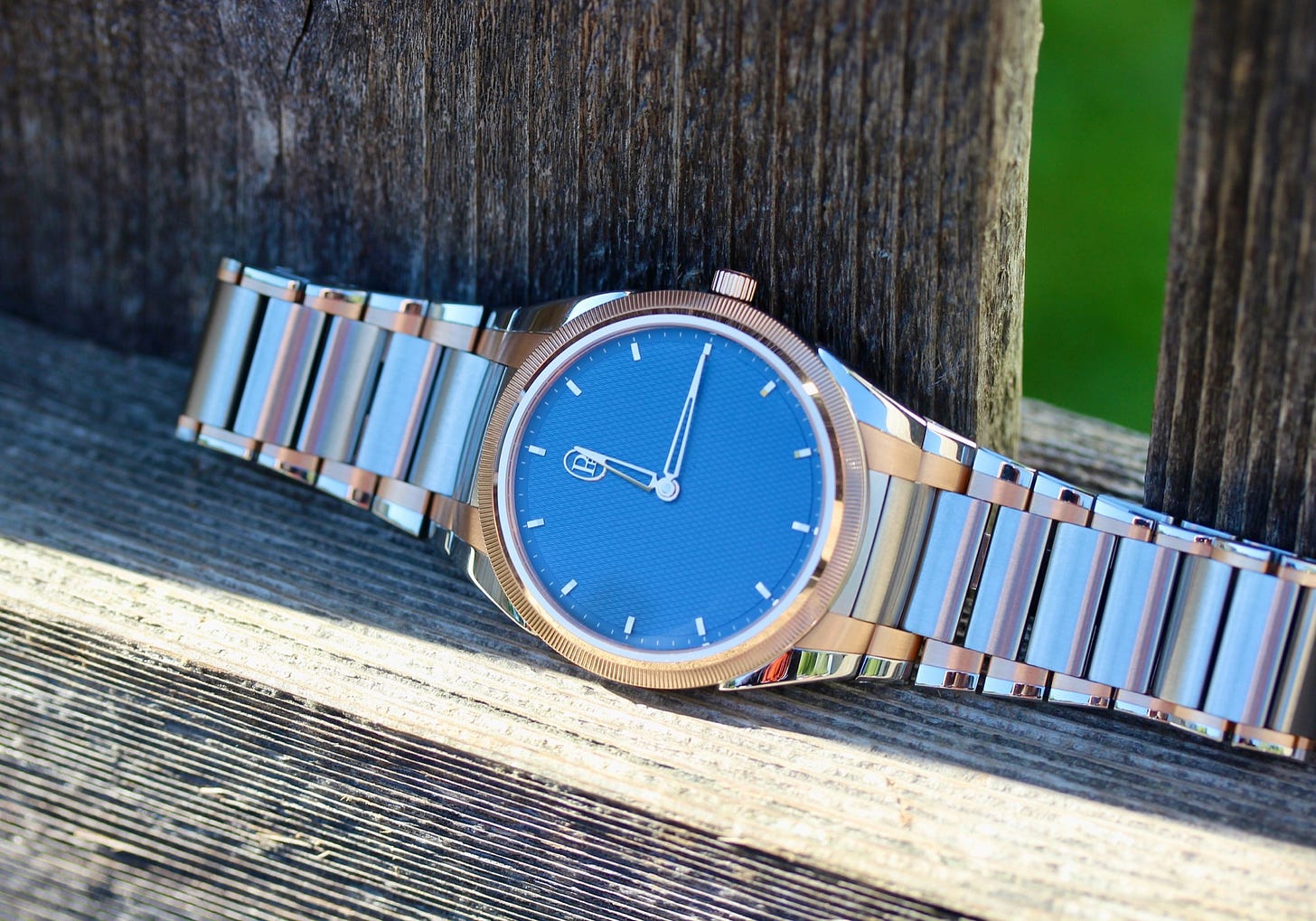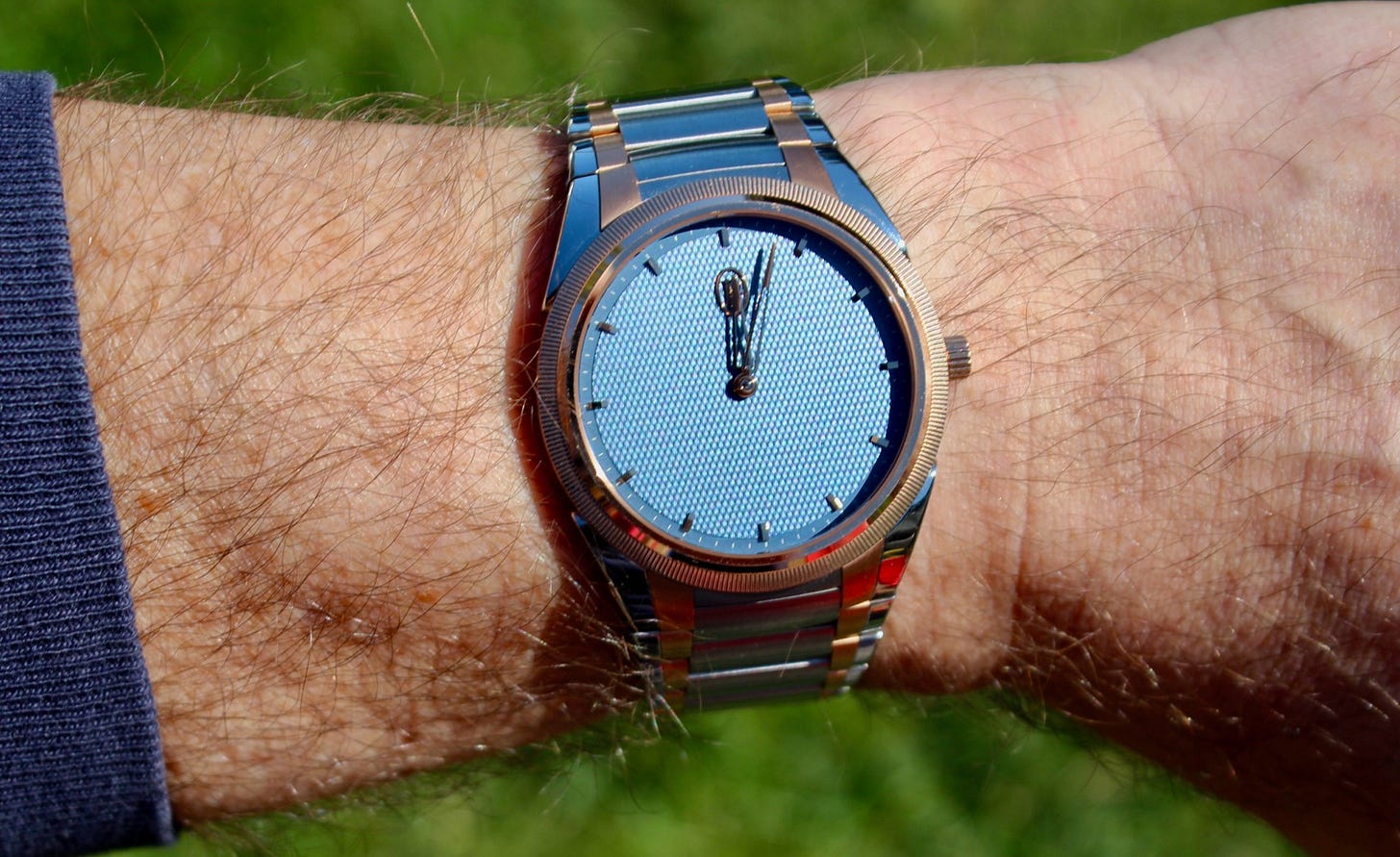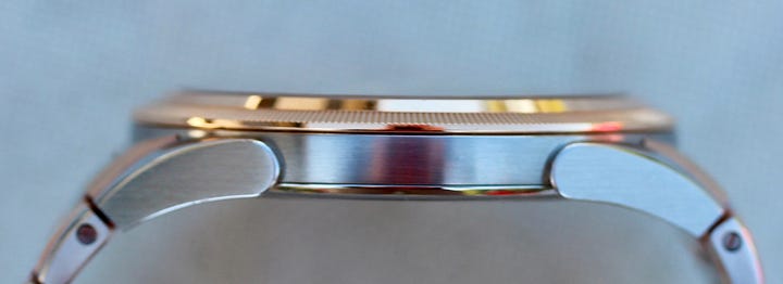 We already mentioned how thin the case is on the watch, and the 40mm diameter helps with that wearability. The tapered two-tone bracelet fits quite comfortable on the wrist, and the integrated clasp is about the thinnest we’ve seen in a bracelet, which helps keep it from digging into your wrist.