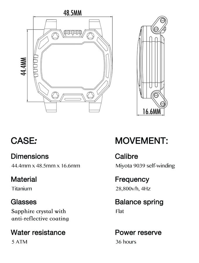 On paper (and without photos), you might be feeling underwhelmed by a 48.5mm titanium-case watch that houses a Miyota 9039 under the dial. Especially when you realize the case is 16.6mm thick (commonly seen on dive watches), yet it only offers a 5ATM WR rating. So, what’s going on here?