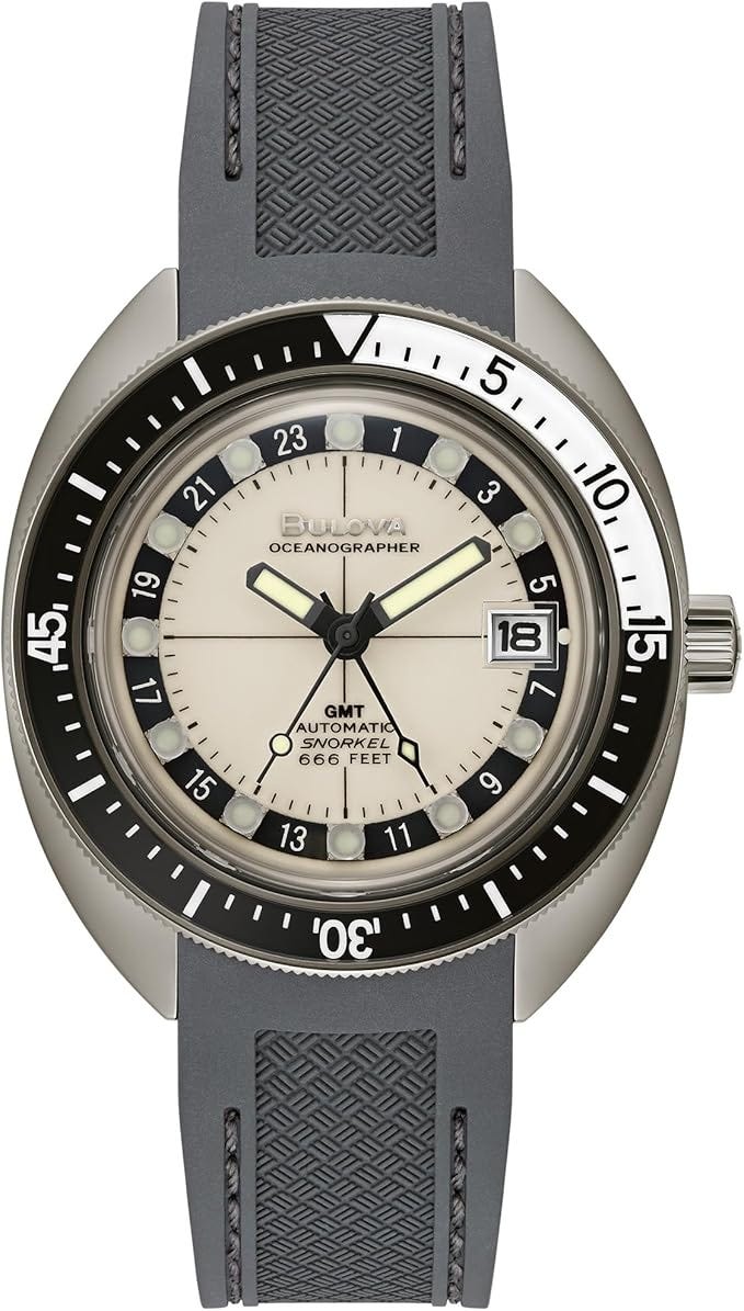 The Miyota 9075 also powers Bulova Oceanographer Snorkel GMT. The stainless steel model has an official retail price of $491 which an absolute steal for this model.