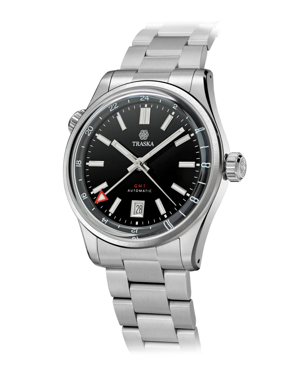 The Traska Venturer GMT Carbon Black uses the same traveler movement and comes in at $785. It offers a clean, modern case and strong finishing for the price.
