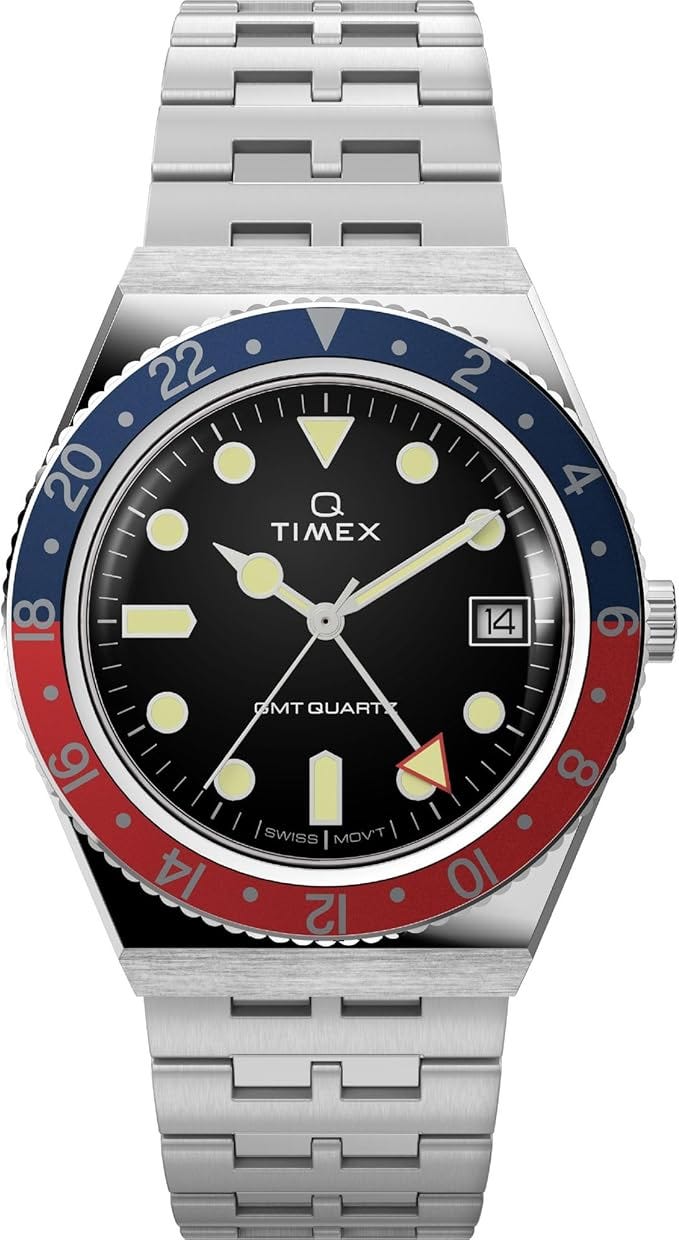 The Timex Q GMT uses a Swiss Ronda quartz movement. At $222 dollars it is a fair entry point into GMT watches, but it is still a caller style GMT.
