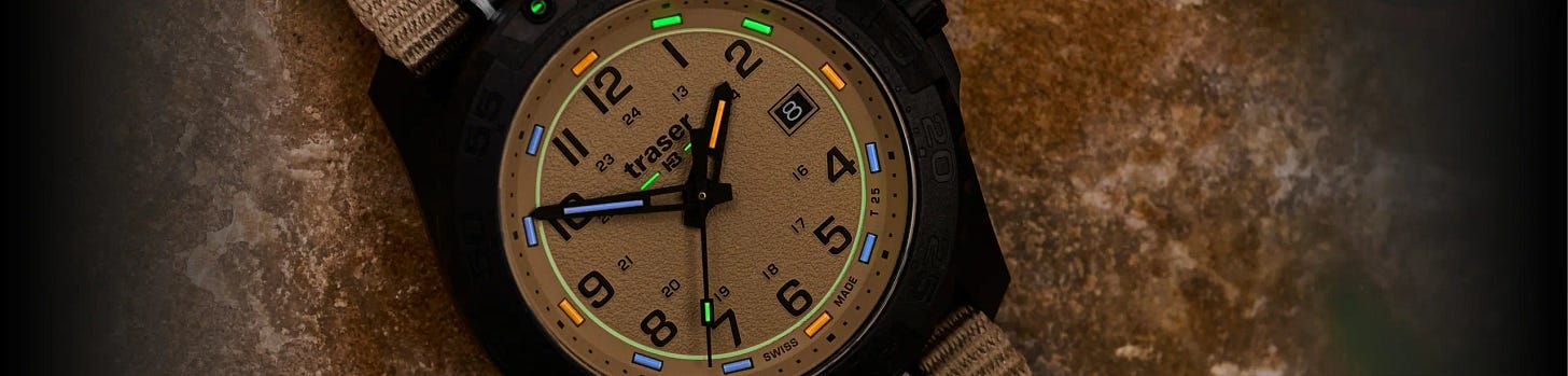 Our friends over at traser produce one of our very favorite passive pieces of technology on a watch: tritium tubes. Bright lume is fun, but the reliability (not to mention the different hues) of tritium are hard to deny. The only “problem” with them is that you don’t see the colors in bright light. Well, now there’s a watch that gives you the color hit in the daytime: the traser P96 OdP.