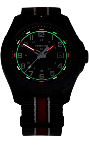 The details listed on the site are a bit thin, but what it seems to be, is that some of the tritium tubes are tinted. You can see that in the photo above, where the red tubes are red even in full light, while the green- and white-glowing tubes are white in the daylight. So, it’s not inherently a change to how tritium works, but instead working with the existing materials. While it may not be a fit for every watch, there are definitely cases where the additional pops of color help elevate a design. In this case, it’s a way to get things aligned to the NATO strap, and giving some additional style to to a handy outdoors tool.
